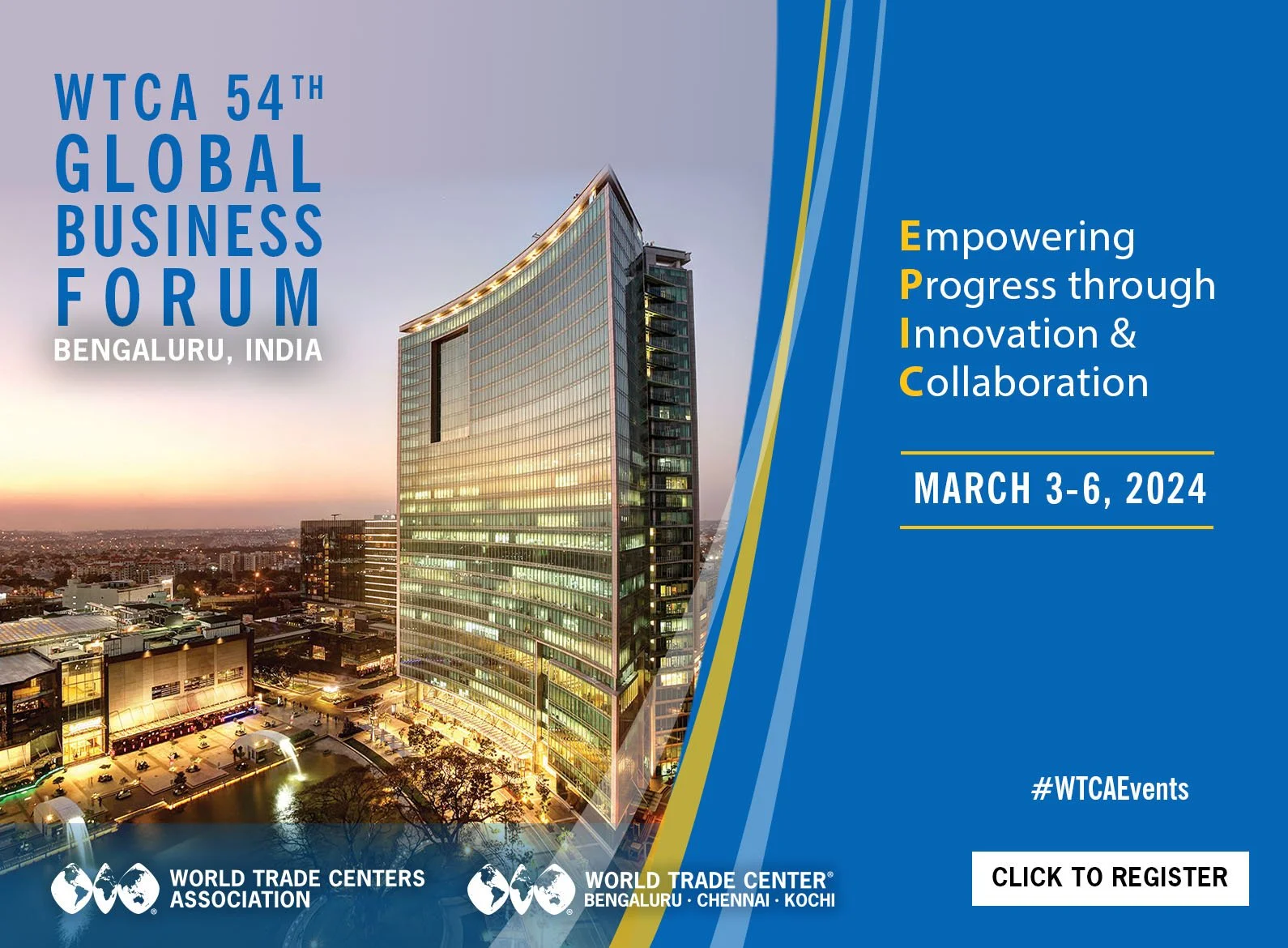 Ciudad de México, 7 de febrero de 2024. — La World Trade Centers Association® (WTCA®) — una organización de comercio internacional que conecta a más de 300 World Trade Center® (WTC®) en casi 100 países — y el World Trade Center Bengaluru serán anfitriones del 54º Foro Global de Negocios (GBF) anual de la WTCA en Bengaluru, India del 3 al 6 de marzo.